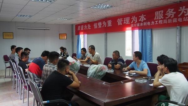2017年7月22日下午4点,局鑫宏工程公司新藏项目部举行新进大学生入职欢迎座谈会。会议由新藏项目部办公室主任李洁主持,鑫宏公司副经理、新藏项目部经理曹军,生产副经理王润明及固滴、新藏项目部各职能部门负责人和往届大学生等参加座谈会。