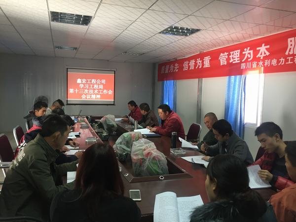 2017年11月24日中午,鑫宏公司在水洛河新藏电站项目部会议室组织召开专题会议,传达学习2017年工程局第十三次技术工作会议精神,会议由公司总工程师郑中华主持。