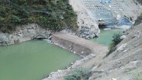 2017年11月13日10时,局三机处承建的博瓦水电站首部枢纽工程在参建各方的共同努力下,二枯上游围堰成功截流。