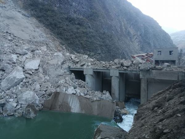 博瓦水电站首部枢纽工程于2019年11月初已通过下闸蓄水前的安全鉴定。2019年11月19日凌晨,在工程所在地发生3.9级地震,受地震影响,闸坝左右岸自然高边坡发生高位岩体崩塌,大方量的左岸崩塌岩体自400米高处坠落,造成导流洞进口及取水口全部掩埋,上游河道严重淤堵,坝顶建筑物和金属结构的全部损毁,施工现场的机械设备、材料等全部损毁掩埋,所幸无任何人员伤亡。闸坝1#、2#泄洪冲砂闸孔已被堵塞无法过流,只剩3#泄洪冲砂闸孔过流,库区水位已雍高近6m,严重影响汛期河道安全行洪。