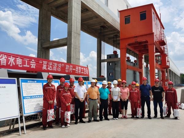2020年7月3日,四川省水利电力工会副主席张玉奎带领办公室主任苏吉斌、干事王妍一行,前往公司承建的金堂县沱江盘龙寺拦河闸工程项目工地,看望慰问高温下工作的一线职工,为他们送去了防暑降温物品、慰问金和贴心的关怀,让职工体会到组织送去的丝丝清凉,背后是维护职工权益的拳拳之心。