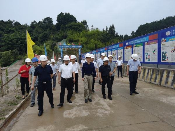 夏至之初,风和日丽的大竹县土地滩水库枢纽工程正处于大坝即将封顶的施工阶段。2021年6月25日上午,四川省水利厅副厅长李勇蔺、建设管理处处长徐波莅临大竹县土地滩水库枢纽工程视察并指导工作。