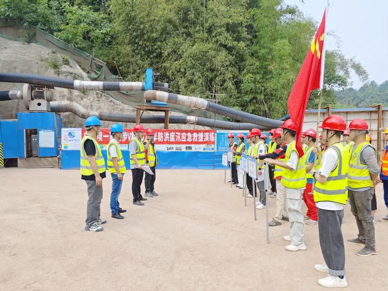 汛期将至,为全面提升防汛应急处置能力,2026年4月19日下午,向家坝北总干渠一期二步工程第Ⅴ标段项目经理部在黄巅咀隧洞支洞出口处组织开展2026年度防洪度汛应急演练。本次演练设应急抢险、技术保障、医疗救护等6个专业组,共40余人参演。